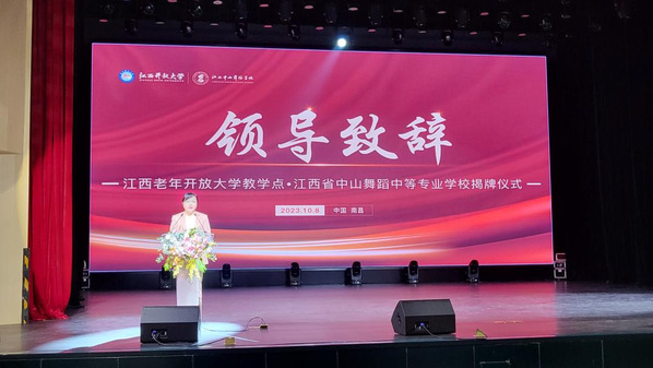 10月8日上午,“江西老年开放大学教学点”揭牌仪式在江西省中山舞蹈中专学校举行。学校党委委员、副校长、江西老年开放大学校长冯豫红、江西省中山舞蹈中等专业学校理事长胡恩雪出席揭牌仪式。双方有关部门负责人和教学点老年学员参加仪式。活动在教学点老年学员和中山舞蹈学校学员精彩的舞蹈与合唱表演中拉开序幕。
