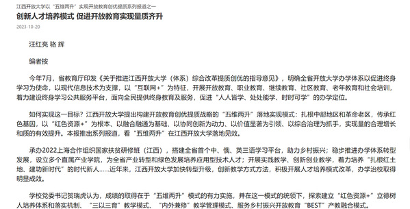 今年7月,省教育厅印发《关于推进beat365在线唯一官网(体系)综合改革提质创优的指导意见》,明确全省开放大学办学体系以促进终身学习为使命,以现代信息技术为支撑,以“互联网+”为特征,开展开放教育、职业教育、继续教育、社区教育、老年教育和社会培训,着力建设终身学习公共服务平台,面向全民提供终身教育及服务,促进“人人皆学、处处能学、时时可学”的办学定位。