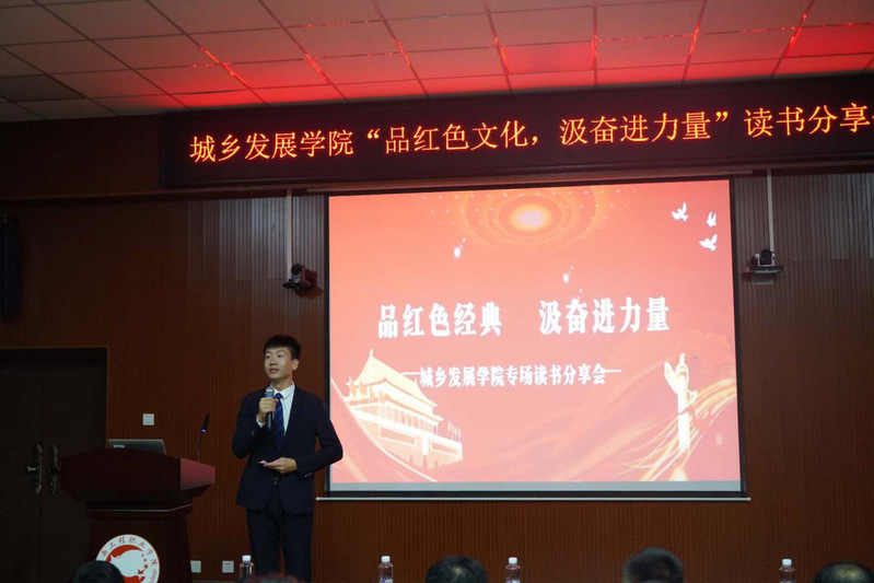10月26日,城乡发展学院在207报告厅举办“品红色文化,汲奋进力量”读书分享会。学校相关部门负责人、各专业学院书记、团学科负责人和100余名学生参加了分享会。