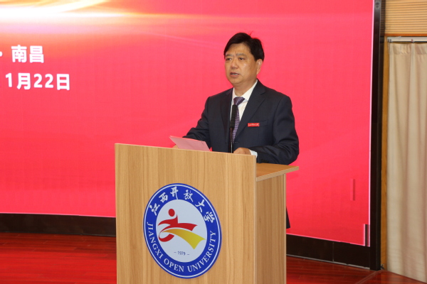 贺瑞虎在主持讲话中表示,多年来,学校一直得到省委、省政府和省委教育工委、省教育厅等有关部门领导的关心支持,一直得到国家开放大学的悉心指导,得到全省开大系统所有师生员工的衷心拥护和全力配合。此次办学评估,是国家开放大学、教育部教育质量评估中心帮助全省办学体系提高办学水平、教学质量的重要举措,对推动全省办学体系教育教学工作健康发展,具有十分重要的意义。学校将以这次办学评估为契机,紧扣“促规范、促建设、促改革、创特色”的原则,以“走在前、勇争先、善作为”的标准,办好人民满意的开放教育,推动学校各项事业高质量发展,为推进江西建设“人人皆学、处处能学、时时可学”的学习型社会作出新的更大贡献。