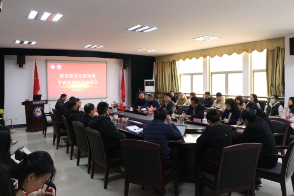 12月12日下午,学校党委书记贺瑞虎带队赴西湖校区,开展“四下基层”下访接访活动,并主持召开教职工座谈会,倾听干部、教师、职工的操心事揪心事烦心事,听取他们对学校改革发展的意见建议。党政办公室、组织人事部、宣传部、学生工作处、招生就业处、校园管理处,西湖校区二级学院主要负责人、专职副书记、干部、教师、辅导员代表参加座谈。