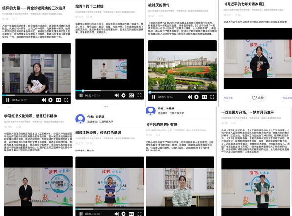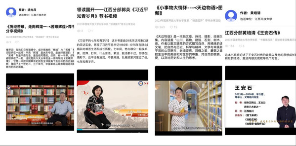 “荐书分享”征集展示活动以线上形式进行。师生通过录制视频分享自己的读书心得和感悟。活动特别邀请校领导、图书馆馆长、师生代表参与其中,18个作品参加线上展示。