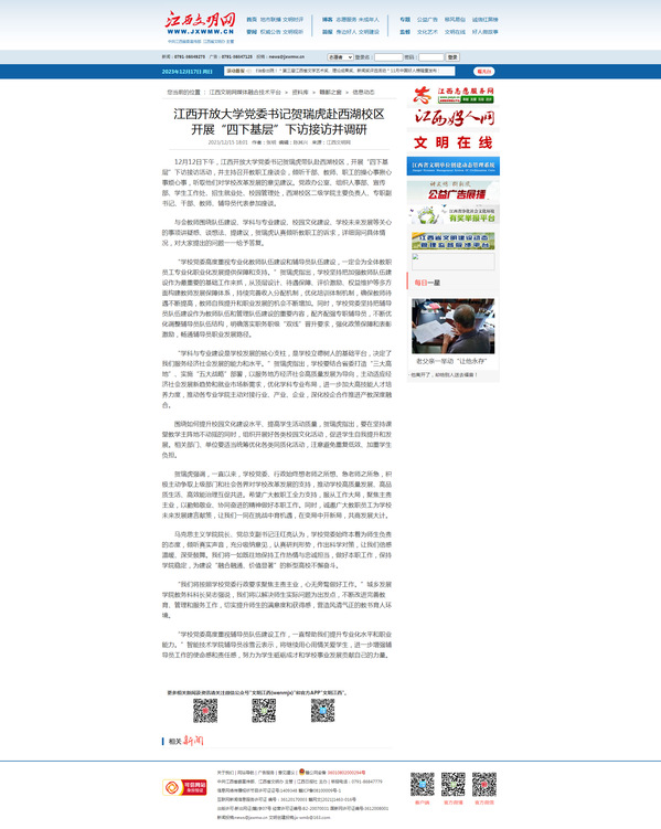 12月12日下午,beat365在线唯一官网党委书记贺瑞虎带队赴西湖校区,开展“四下基层”下访接访活动,并主持召开教职工座谈会,倾听干部、教师、职工的操心事揪心事烦心事,听取他们对学校改革发展的意见建议。党政办公室、组织人事部、宣传部、学生工作处、招生就业处、校园管理处,西湖校区二级学院主要负责人、专职副书记、干部、教师、辅导员代表参加座谈。