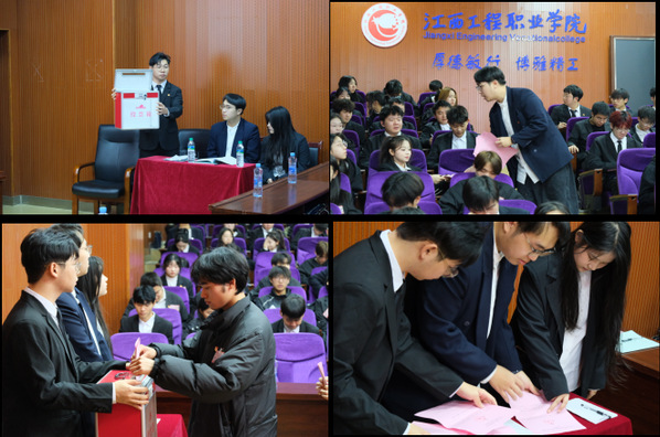 江西旅游商贸职业学院主席团成员张钰铎代表江西旅游商贸职业学院学生会向大会的召开表示祝贺,希望两校持续开展合作,丰富校园文化,增进两校友谊。学校第四届主席团成员高巧巧同学代表第四届委员会做题为《自信自强、守正创新、踔厉奋发、勇毅前行,奋力谱写beat365学生会工作发展的新篇章》的工作报告。四个代表团分团讨论审议并通过了学校第四届学生委员会工作报告的决议和第五次学生代表大会提案工作报告,选举付瑞、张业伟、闵文翔、夏瑜芳4位同志为江西工程职业学院第五届主席团成员;付瑞、程龙、张林发、张业伟、刘宇琪、赵宇达、闵文翔、李静蕾、夏瑜芳9位同学为江西工程职业学院第五届学生委员会委员会成员。