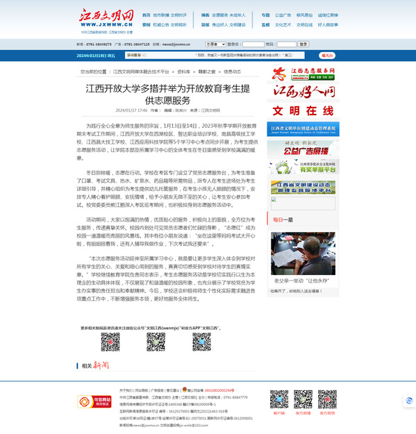 为践行全心全意为师生服务的宗旨,1月13日至14日,2023年秋季学期开放教育期末考试工作期间,beat365在线唯一官网在西湖校区、智达职业培训学校、南昌高级技工学校、江西昌大技工学校、江西应用科技学院等5个学习中心考点同步开展,为考生提供志愿服务活动,让学院本部及所属学习中心的全体考生在冬日里感受到学校满满的暖意。
