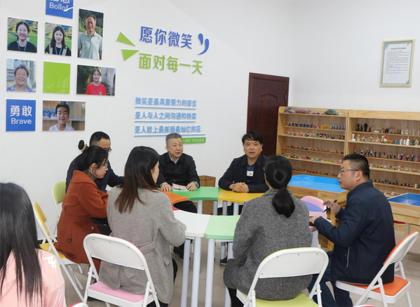 在心理健康咨询室,贺瑞虎一行仔细查看了学生心理健康教育记录,耐心询问关于学生心理健康的具体情况,并展开分析研究,提出工作建议。他指出,心理健康对于大学生的发展和成长至关重要,它直接影响着社交能力、学业成绩和职业规划。心理健康教育是学校思想政治工作的重要内容,心理健康教育教师更是学校思政教育队伍的重要组成部分。“大家要走进学生的内心世界,以情育人、以情感人、以情化人、给学生以亲近感、信任感、期望感。”贺瑞虎强调,要深入了解个体的心理状态和实际需求,落实“一人一案”和“一人一策”,找准需求并“对症下药”,通过内容丰富、形式多样的心理辅导活动,营造积极向上、愉快和谐的校园文化氛围,引导学生接纳自我、关心自身,助力学生挖掘自身潜能,积极面对人生。