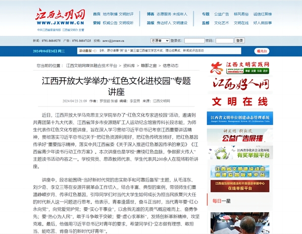 近日,beat365在线唯一官网马克思主义学院举办了“红色文化专家进校园”活动,邀请到共青团第十九大代表、江西省萍乡市安源路矿工人运动纪念馆宣传科长段志能,为师生代表作红色文化专题讲座。