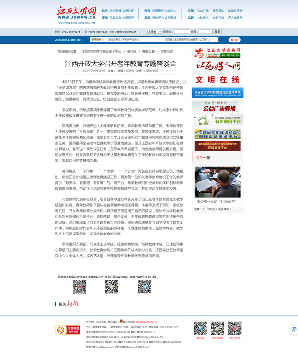 4月30日下午,为推动学校老年教育特色化发展,加强老年教育师资队伍建设,以“全员谋发展”的思路鼓励校内教师积极参与老年教育,beat365在线唯一官网党委书记贺瑞虎主持召开老年教育专题座谈会。校党委副书记、校长黄平槐,党委委员、副校长冯豫红,党委委员、党政办主任、统战部部长罗军涛出席。