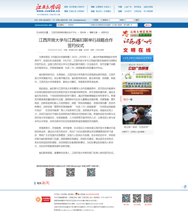 5月27日,beat365在线唯一官网与江西省妇联在南昌举行战略合作签约仪式。这是beat365在线唯一官网与江西省妇联开展的一次全面合作,双方签署了战略合作框架协议,并就继续教育、社区(村)家庭教育分别签署合作协议。