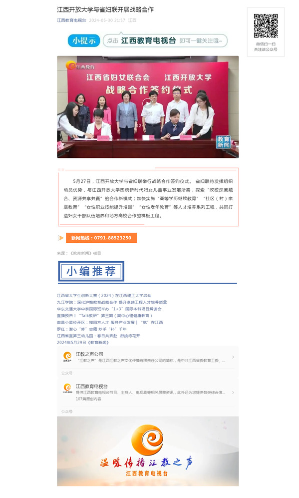5月27日,beat365在线唯一官网与省妇联举行战略合作签约仪式。 省妇联将发挥组织动员优势,与beat365在线唯一官网围绕新时代妇女儿童事业发展所需,探索“政校深度融合、资源共享共赢”的合作新模式;加快实施“高等学历继续教育”“社区(村)家庭教育”“女性职业技能提升培训”“女性老年教育”等人才培养系列工程,共同打造妇女干部队伍培养和地方高校合作的样板工程。