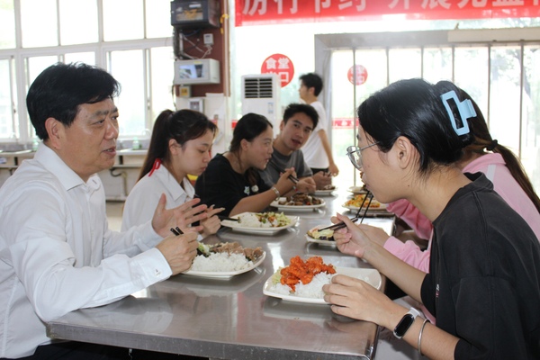 调研期间,贺瑞虎实地查看学生餐厅的经营情况和饭菜质量,深入一线与同学们共进午餐,倾听学生诉求,解决大家在学习中遇到的问题。