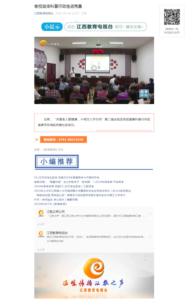 江西教育电视台:老视健康科普行动走进南昌