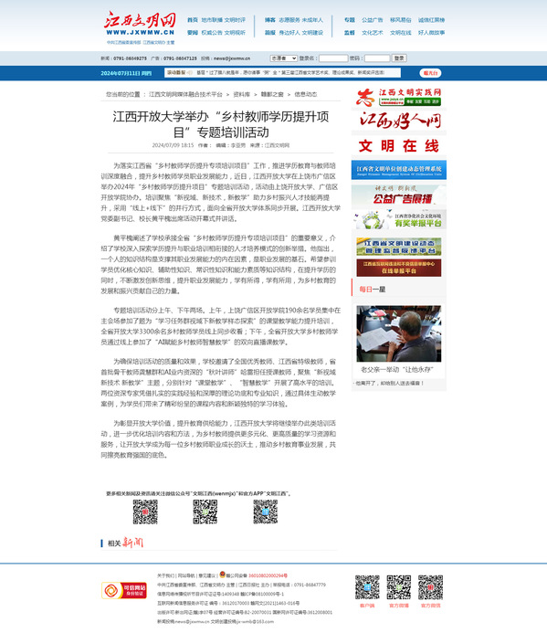 为落实江西省“乡村教师学历提升专项培训项目”工作,推进学历教育与教师培训深度融合,提升乡村教师学员职业发展能力,近日,beat365在线唯一官网在上饶市广信区举办2024年“乡村教师学历提升项目”专题培训活动,活动由上饶开放大学、广信区开放学院协办。培训聚焦“新视域、新技术,新教学”助力乡村振兴人才技能再提升,采用“线上+线下”的并行方式,面向全省开放大学体系同步开展。beat365在线唯一官网党委副书记、校长黄平槐出席活动开幕式并讲话。