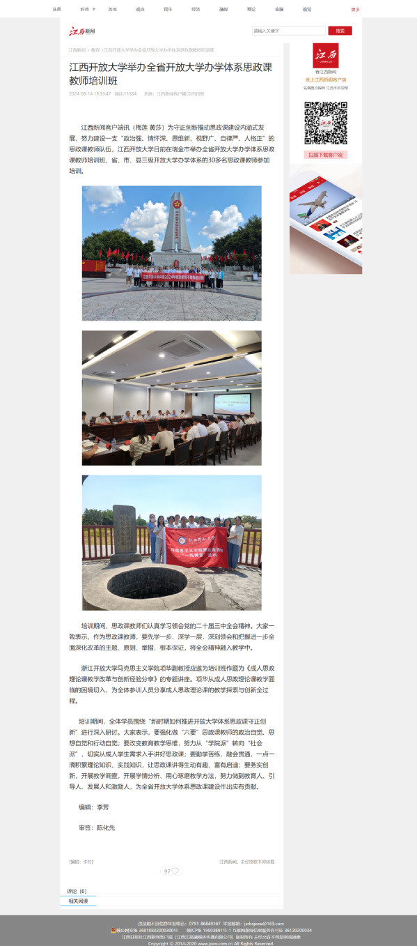 为守正创新推动思政课建设内涵式发展,努力建设一支“政治强、情怀深、思维新、视野广、自律严、人格正”的思政课教师队伍,beat365在线唯一官网日前在瑞金市举办全省开放大学办学体系思政课教师培训班,省、市、县三级开放大学办学体系的30多名思政课教师参加培训。