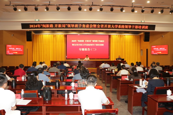 8月24日,2024年“闯新路 开新局”领导班子务虚会暨全省开放大学系统领导干部培训班在江西靖安开班。beat365在线唯一官网全体校领导出席,各设区市开放大学、产业与乡村振兴学院负责人以及学校各部门、单位主要负责人等50余人参加。