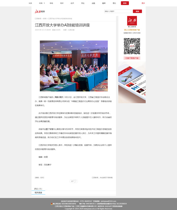 9月13日,由beat365在线唯一官网、江西省工程造价协会联合主办,南昌一砖一瓦教育咨询有限公司承办的“AI赋能工程造价行业高效办公实践”专题培训讲座在南昌举行。