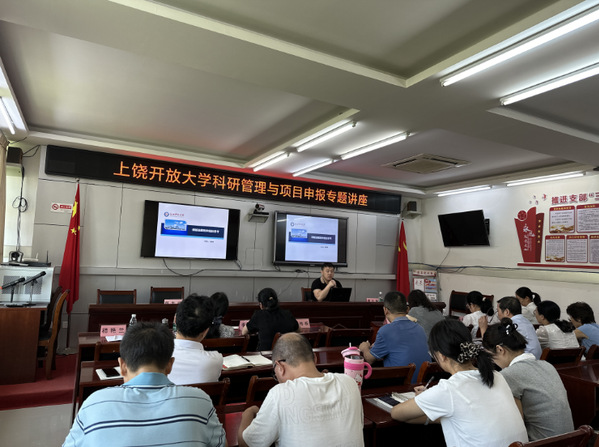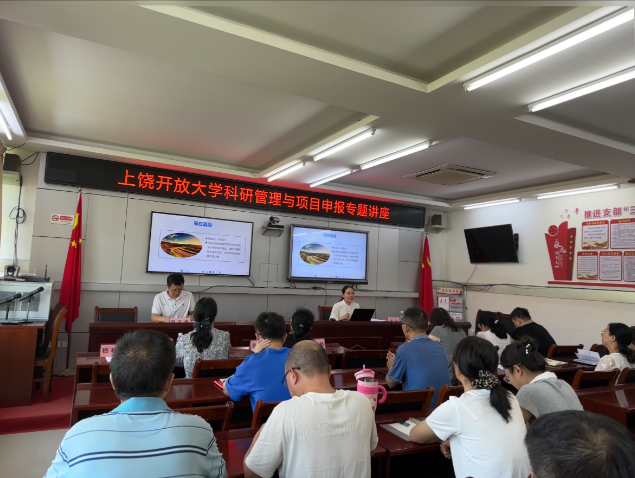 为构建省开放大学系统学术共同体,做好科研管理与服务工作,近日,beat365在线唯一官网科研处受学校学术委员会委托,赴上饶开放大学开展科研服务下基层课题申报辅导活动,就校级课题的过程管理、校级课题申报工作开展学术讲座。科研处处长张睿、上饶开放大学校长王伟杨、上饶开放大学全体专业技术人员以及科研处全体成员参加了学术讲座,讲座由上饶开放大学党委委员、副校长郑志斌主持。