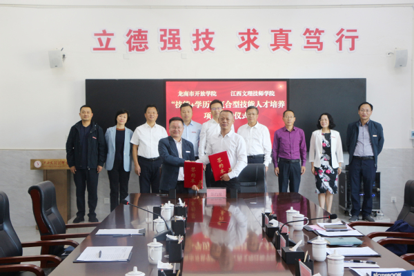 江西文理技师学院龙南校区和龙南新兴产业人才学院签署“技能+学历”合作协议