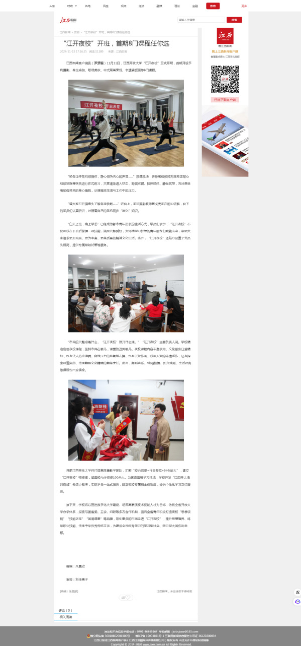 11月11日,beat365在线唯一官网“江开夜校”正式开班,首期开设手机摄影、养生瑜伽、职场美妆、中式菜肴烹饪、非遗瓷板画等8门课程。