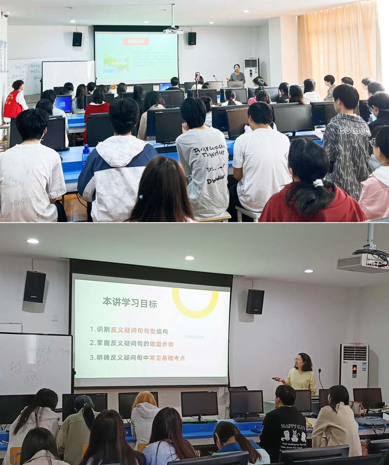 课堂展示活动面向全校师生开放,邀请了5名校外专家和60名学生担任评委,对参评教师的教学能力、课堂互动及教学效果进行了全面、细致的评审打分。活动现场气氛热烈,两个试听室内人头攒动。参与课程展示的多位校内教师巧结合校园生活中的实例,以精炼的语言和深入浅出的教学方式赢得了学生们的热烈掌声。特别是校外教师邓鑫在高等数学课程展示中,以生活中的实际应用为切入点,生动阐释了函数与极限这一专升本考试的重点难点,展现出了高超的教学技艺与深厚的专业素养。教师们各展所长,以饱满的热情和专业的知识,为学生们呈现了一场场精彩纷呈的试听盛宴。