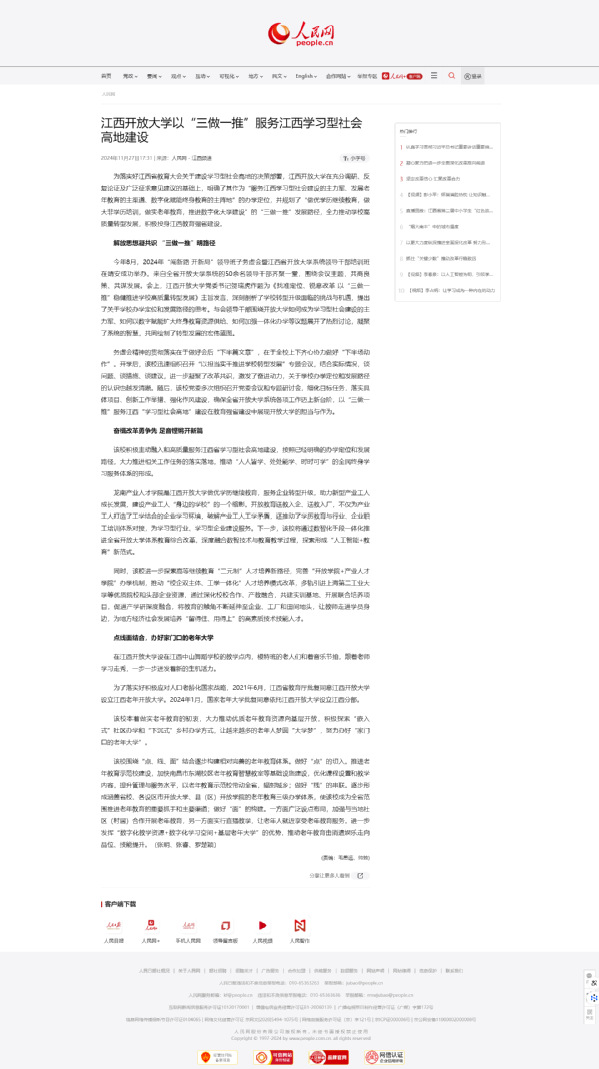 11月27日,人民网报道beat365以“三做一推”服务江西学习型社会高地建设纪实。原文地址:http://jx.people.com.cn/GB/n2/2024/1127/c186330-41056829.html (责任编辑:罗楚颖)