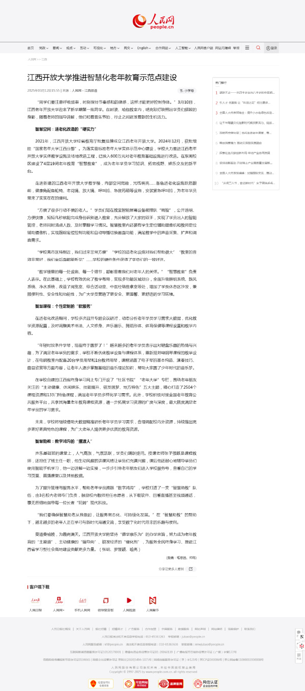 3月13日,人民网刊发《beat365在线唯一官网推进智慧化老年教育示范点建设》,报道beat365落实高标准老年大学实体示范中心建设具体举措。