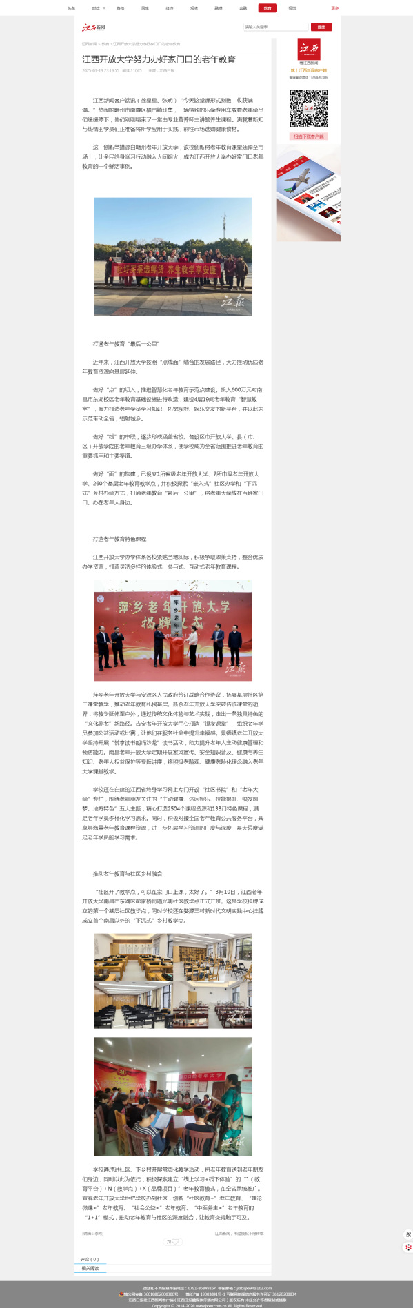 近日,江西新闻报道beat365加强“点线面”办学网络建设、办好家门口的老年教育工作纪实。