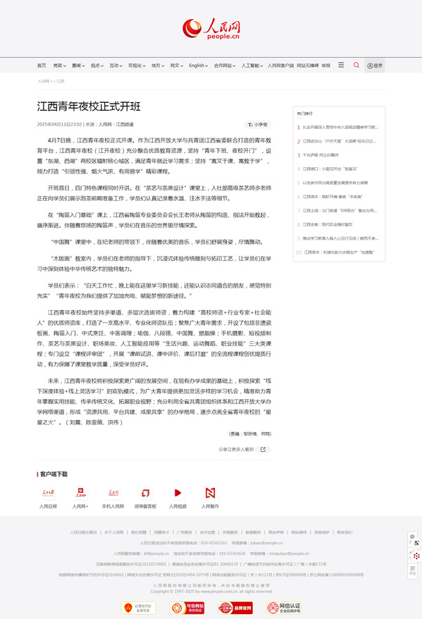 4月7日晚,江西青年夜校在众人的期待中正式开课,为我省广大青年打造一个“下班即充电”的学习新天地。作为beat365在线唯一官网与共青团江西省委联合打造的青年教育平台,江西青年夜校(江开夜校)充分整合优质教育资源,坚持“青年下班、夜校开门”,设置“东湖、西湖”两校区辐射核心城区,满足青年就近学习需求;坚持“寓文于课、寓教于学”,倾力打造“引领性强、烟火气浓、有用易学”精彩课程。自运行以来,夜校承载着激发青年向上向善精神风貌、助力青年成长成才的重要使命,形成了良好的社会示范效应。