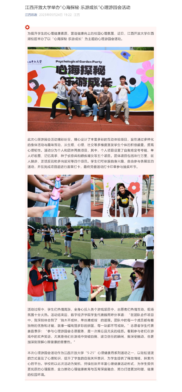 为提升学生的心理健康素质,营造健康向上的校园心理氛围,近日,beat365在线唯一官网在西湖校区举办了以“心海探秘 乐游成长”为主题的心理游园会活动。原文地址:https://mp.weixin.qq.com/s?__biz=MzI1OTM4MDMzMA==&mid=2247613287&idx=3&sn=c30e417fca63ce966c2a6ea63218bff8&chksm=eb87ca648c822df15dc12a0f40ad8ef92af1a8bd3e383ee0903cf3370aaeffbc758db28021ea&mpshare=1&scene=1&srcid=0524xDQGKKBIsy30W1IsNAOe&sharer_shareinfo=25700802053c89e52d7f597a01fc88a9&sharer_shareinfo_first=25700802053c89e52d7f597a01fc88a9&exportkey=n_ChQIAhIQsm8wx76qT64L%2FqX0T4Wk0hL1AQIE97dBBAEAAAAAAPHFAr7lKwMAAAAOpnltbLcz9gKNyK89dVj0Y%2BpoHff5AA8JoTL3%2FXJXBejHmqm5QWLvqdRSpUf2NBZgzvBQOZcLObQDN8ASX9haSL3NIkiqbskxhuxPae2YR9UjKkChRrrzK6oUJSVROtOAN9sHsCW4Lvfylm3nq3zR%2BGzCIvY1CLHGFtRj13J2WUi6OtzO30fFlWGzQGO3LEl5p1GW3xxRra%2Bnn%2Fer7cfoMXqxtBDxTotZPfH4W%2FqcGbV5xx%2BWXI4qRneVRiQaNvToY5sKgiX%2F73XF86GssZRUrYtQ4Nq51tVpnvM9radS&acctmode=0&pass_ticket=9m%2By0ppthm%2Fej2t%2FLUVMan3Hh%2BkD5fcUoo3kQY57m1OooBDltjnZCOSIOUfRx7aV&wx_header=0&poc_token=HCmzMWij8au8mPCOOr-yJu80SL9kcrqomD0v2ulc (审校:罗楚颖 徐星星 张明)