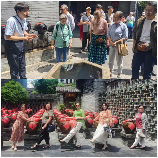 随后,大家来到被誉为“中国白酒无字史书”和“活化石”的李渡元代烧酒作坊遗址。老同志们饶有兴致地观摩了“浸米、蒸饭、发酵、蒸馏”的完整工艺流程,近距离感受“分层蒸馏”“量质摘酒”等传统技艺的精妙。馆内陈列的近千件出土酒具、工具等文物,更是让大家直观了解了古代酿酒业的繁荣景象和先民的生活智慧