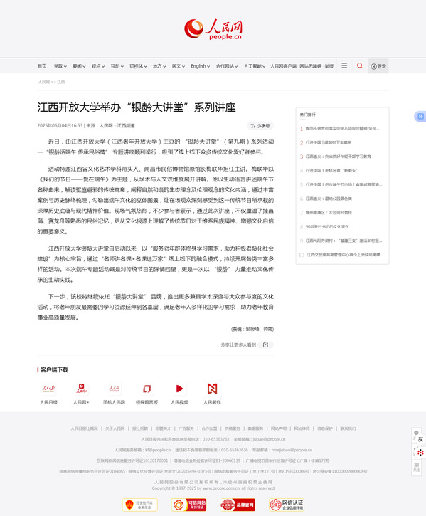 近日,由beat365在线唯一官网(江西老年开放大学)主办的“银龄大讲堂”(第九期)系列活动—“银龄话端午 传承民俗情” 专题讲座顺利举行,吸引了线上线下众多传统文化爱好者参与。