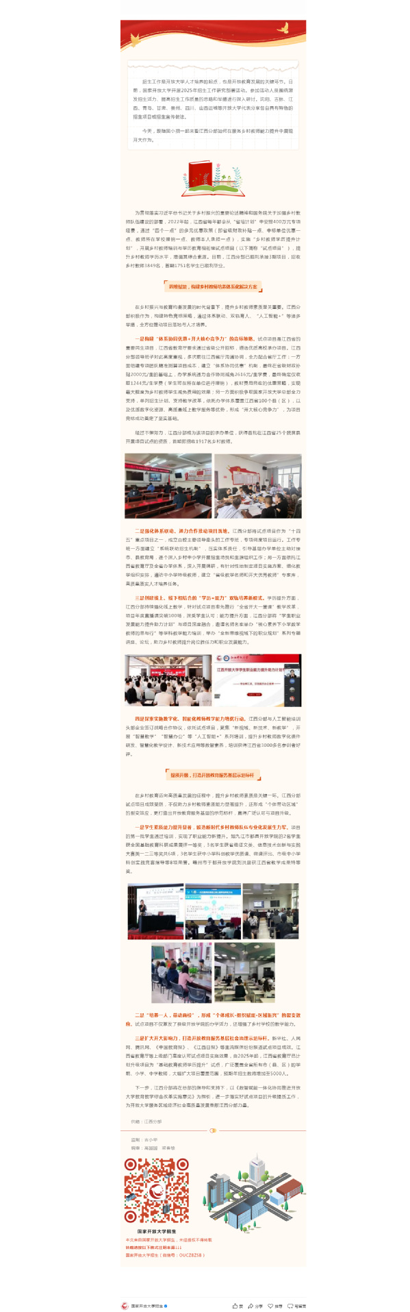 近日,国家开放大学微信公众号“国家开放大学招生”发布《赋能乡村教师队伍建设:江西分部让开放教育在基层“开花结果”》,报道beat365在线唯一官网如何在服务乡村教师能力提升中展现开大作为。原文地址:https://mp.weixin.qq.com/s?__biz=MzU1OTY0OTc5NQ==&mid=2247511367&idx=4&sn=148ae635a60265e2f5ccffbbb18438c7&chksm=fd96c5a86c8ecb3fd27befa1787687911c6b09bb15a38245b9b7971930ae69e090901e27af45&mpshare=1&scene=1&srcid=0613L2BWpCBsokfqMcphygyQ&sharer_shareinfo=d9e24ea53691afa03237ea23839066d2&sharer_shareinfo_first=d0c7d064dae6400254d225520e69f6f1&exportkey=n_ChQIAhIQMMpIQx3qdFaid%2BMMgMRGXhL1AQIE97dBBAEAAAAAANMTIMB4GSoAAAAOpnltbLcz9gKNyK89dVj0zF2qr%2FHg18v0XGfXG99ASkTiIvgeMrsvYfWv9%2FfduaItccRPKq5K%2BiCNestb8MXEVdHkmE4aVASUxoD4eT5IoYq8ouUy54OrhwEq6h4pumA56QhSjn1ir8diB0E2fqMgrRu33vvjVtSL4b9nFjfCPtnuoKi8VXkCIYSJ29g2JQVE2Wf2gDMThqoJh75wW16V1meLdmIBi8IyOyN%2F6si09WsvmYksdxd7s8mU0pGaAAM41ise8TCMpT%2Bo4zy1GB6hNmAzOqLUCbP8dCUqIPoR&acctmode=0&pass_ticket=rFYdyYg%2BL8L5urDxCt4msl3ovjFzgvQ2TvfrSyo%2BmIFpbJ4cIDTKrMPxyeRxL9hS&wx_header=0#rd (审校:罗楚颖 徐星星 张明)