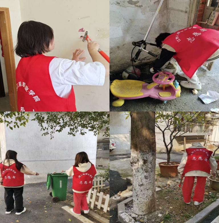 学生志愿者到达社区后,由杜益岚老师为参与志愿工作的同学进行工作分配,清除楼梯广告贴纸、为社区楼梯翻新,针对道路两旁、居民楼门口的枯枝落叶、烟头纸屑、废弃垃圾等,同学们更是躬下身子认真清理,全方位消除卫生死角。整个活动过程中,大家相互配合,共同努力,社区面貌焕然一新。