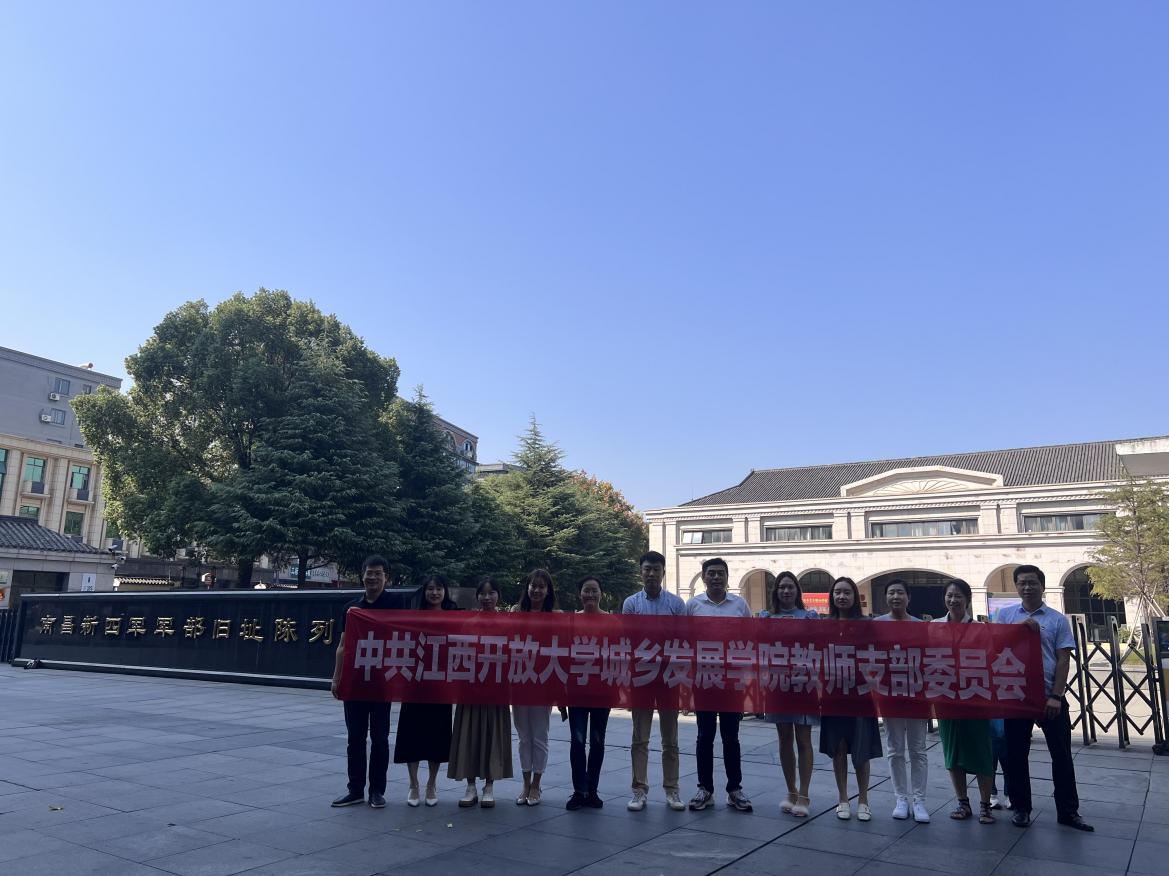 10月18日下午,为深入学习宣传贯彻习近平总书记考察江西重要讲话精神,城乡发展学院教师党支部一行前往南昌新四军军部旧址陈列馆开展“重温红色记忆,感受峥嵘岁月”主题红色实践活动,全力推动习近平总书记考察江西重要讲话精神在赣鄱大地落地生根、开花结果。支部把学习宣传贯彻总书记考察江西重要讲话精神,与学习贯彻党的二十大精神和党中央决策部署结合起来,与深入开展主题教育结合起来,加强组织领导,周密部署安排。活动围绕“牢记初心使命,强化责任担当”八字主题,以凝练传承红色基因为第一要求, 秉承“学精神,藴思想,重践行”,将时代要求内化于心、外化于行。