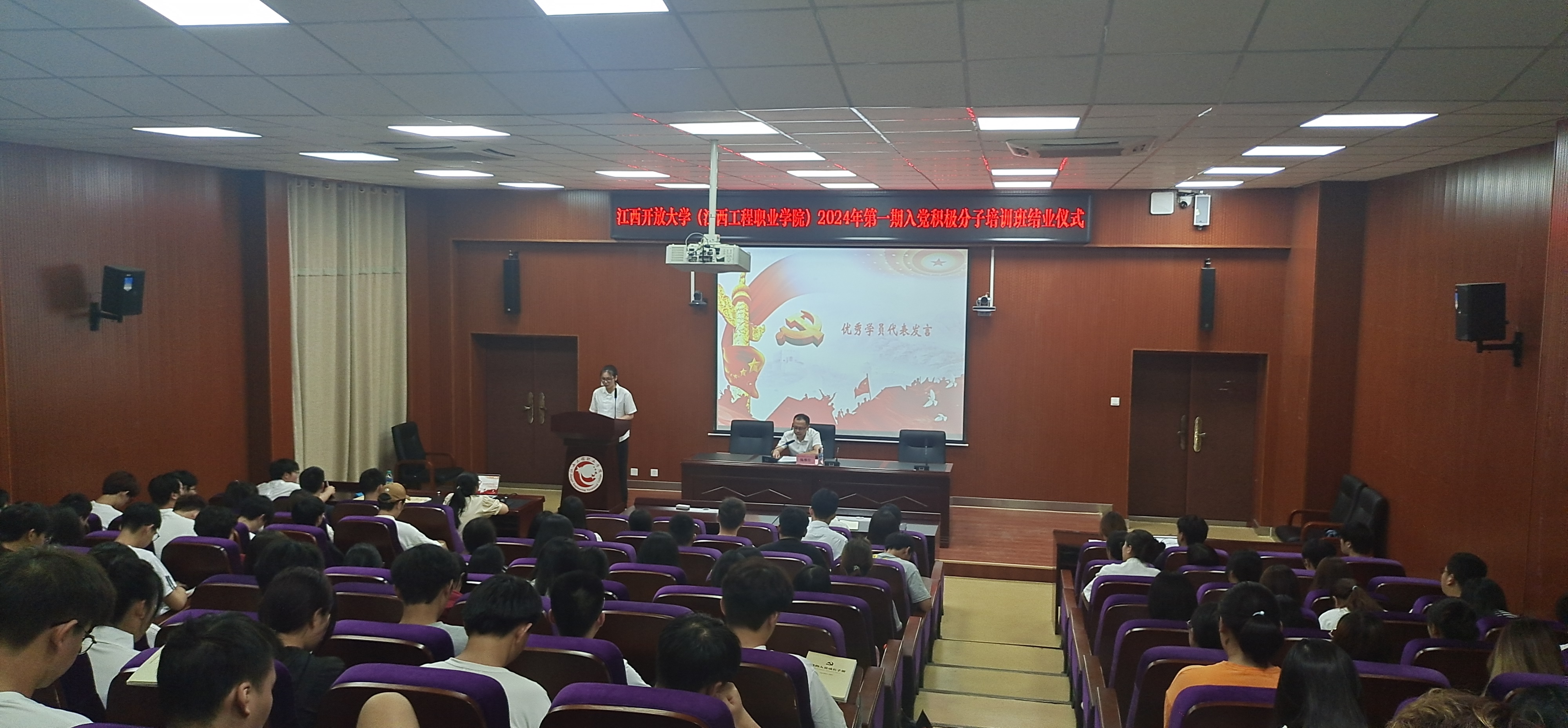 结业仪式上,各学院优秀学员代表走上讲台向大家交流学习心得。23村镇建设与管理班王婷:“路漫漫其修远兮,吾将上下而求索”,本次党课学习对我产生了深刻的触动,无论是在党的理论知识方面,还是在个人思想觉悟方面,我都取得了显著的进步,对我树立正确的世界观、人生观、价值观产生了深远的影响,也更加坚定了我加入中国共产党的决心。23酒店管理班甘锦轩:通过这次学习,我认为还需不断努力,提高自身的修养,以党员的标准严格要求自己,始终坚持全心全意为人民服务的宗旨。学员们的发言情真意切、催人奋进,让大家深受启发和鼓舞。