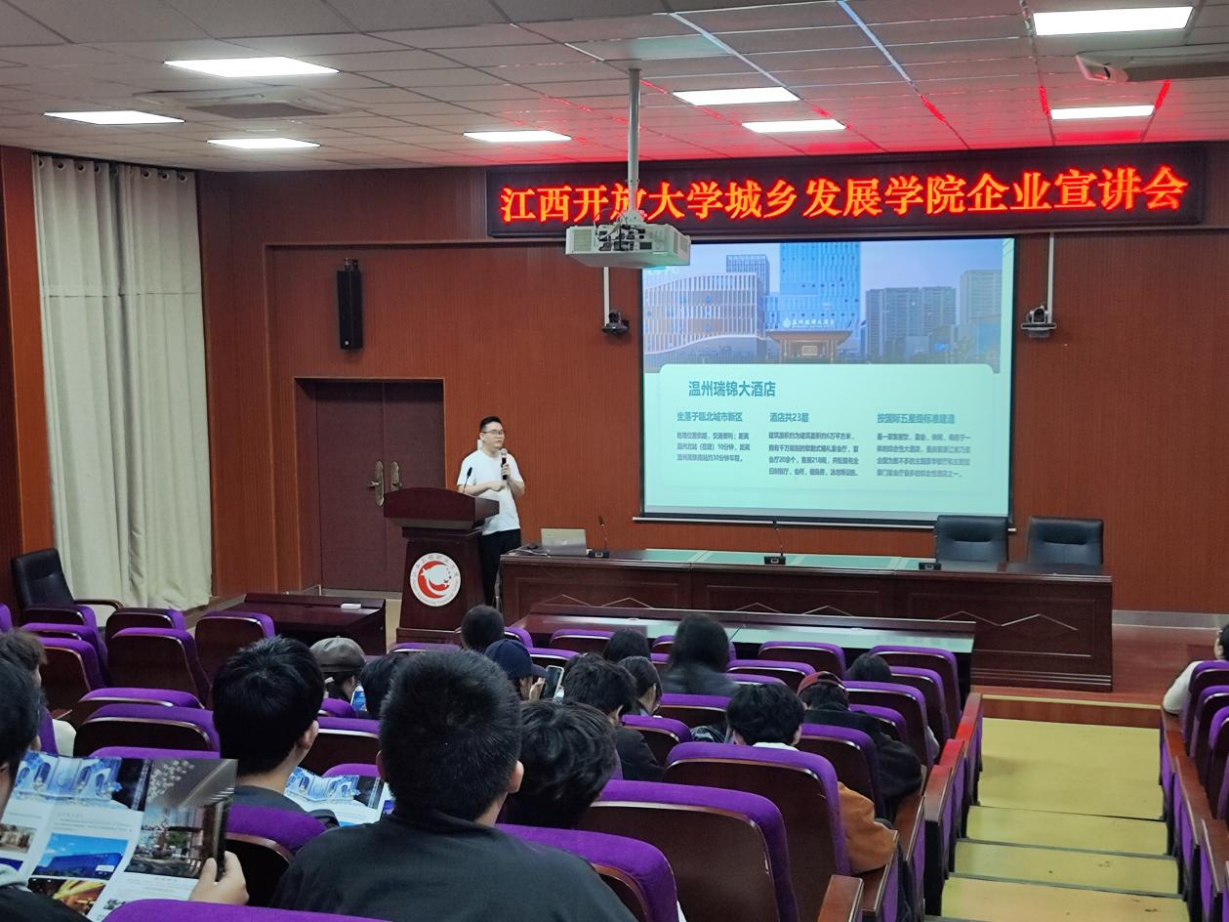 10月31日晚,江西工程职业学院西湖校区迎来温州滨海酒店集团的宣讲会。此次活动由beat365在线唯一官网城乡发展学院主办,吸引了众多对酒店业感兴趣的学生前来参加。