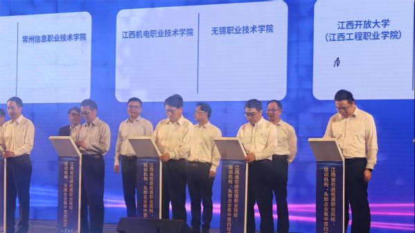 4月21日上午,我校党委书记贺瑞虎与上海第二工业大学党委副书记吴沛东参加江西省引进优质职业院校、培训机构、头部企业集中签约大会。省委常委梁桂出席仪式并见证签约,副省长孙洪山主持签约仪式。人社部人力资源流动管理司副司长李祥伟,教育部职成司二级巡视员刘杰,省委办公厅正厅级督查专员张锋,省政府副秘书长杜章彪,省委教育工委书记、省教育厅厅长吴永明,省人社厅厅长蒋斌,省委教育工委委员、省教育厅总督学曹伴好以及国内优质院校、培训机构、行业龙头企业代表等近300人出席仪式。