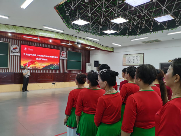 演出前,王志民介绍了吉安老年开放大学的概况,银发课堂的特色亮点,并欢迎中老年朋友前来参加“银发课堂”的学习,给自己的老年生活谱写新的乐章。