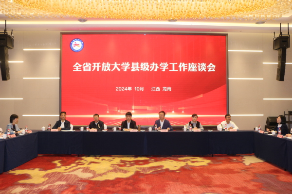 为凝聚系统合力,共谋开大发展,10月24日,11家设区市开放大学、24家县级开放学院的领导干部齐聚一堂,共同参加全省开放大学县级办学工作座谈会。校党委书记贺瑞虎,校党委副书记、校长黄平槐,校党委委员、副校长冯豫红出席。龙南市委副书记、市长,经开区党工委副书记、管委会主任彭江闽致辞。校党委委员、党政办公室主任罗军涛,龙南市委教体工委书记、市教育体育局局长郭建龙,发展规划处、教务处、招生就业处相关负责同志参加。黄平槐主持会议。