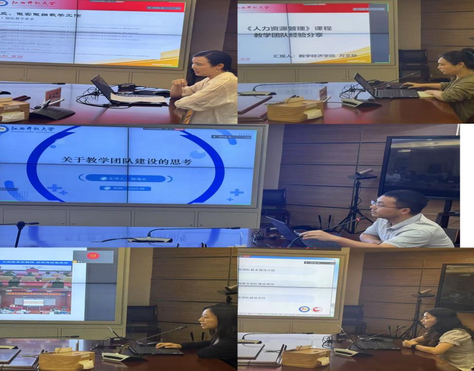 会上,《习近平新时代中国特色社会主义思想概论》、《Dreamweaver网页设计》、《人力资源管理》、《医护心理学》、《公共部门人力资源管理》5门课程的团队负责人聚焦创新教学案例,融入课程思政元素,发挥数智赋能助推作用,孵化教学科研成果,参与教学竞赛活动,做好学习支持服务等方面进行经验分享。