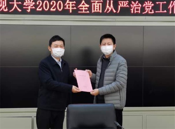 会上,易小明向校领导班子其他成员颁发了全面从严治党和廉洁从政责任书。全体校领导分别与各部门(单位)主要负责人签订了全面从严治党责任书。