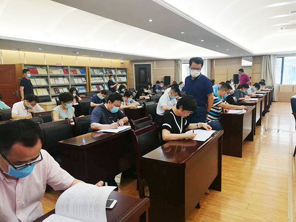 此次测试采取闭卷形式进行,侧重考察党的十九大精神、《中国共产党章程》、《中国共产党纪律处分条例》以及中央八项规定精神等相关内容。测试现场氛围紧张严肃、参考人员神情专注、认真作答,监考人员认真负责,严格纪律。
