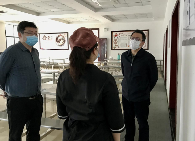 随后,王水平又来到青山湖校区教工食堂,详细了解了工作人员佩戴口罩、核酸检测以及后厨卫生、消毒消杀等情况。他指出,要抓好重点场所疫情防控,安排好错峰就餐;要提高安全管理意识,严格执行食品进货查验记录制度,确保食品供货渠道正规、可溯源,保障食品卫生安全。