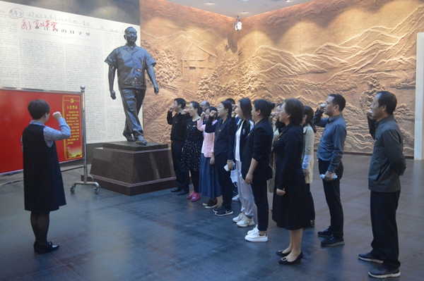 党员同志们来到邓小平同志曾经劳动、生活了3年零4个月的新建县拖拉机修配厂原址,首先在小平同志塑像前面对鲜红的党旗,一起高举右手,再次庄严宣誓。铿锵恢宏的誓词,强烈震撼着在场的每一位党员,一字一句,神圣而豪迈。重温入党誓词,坚定理想信念,体现了党员同志们对中国共产党的无限忠诚。