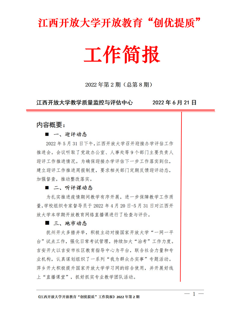 beat365在线唯一官网开放教育“创优提质”工作简报 2022年第2期(总第8期)
