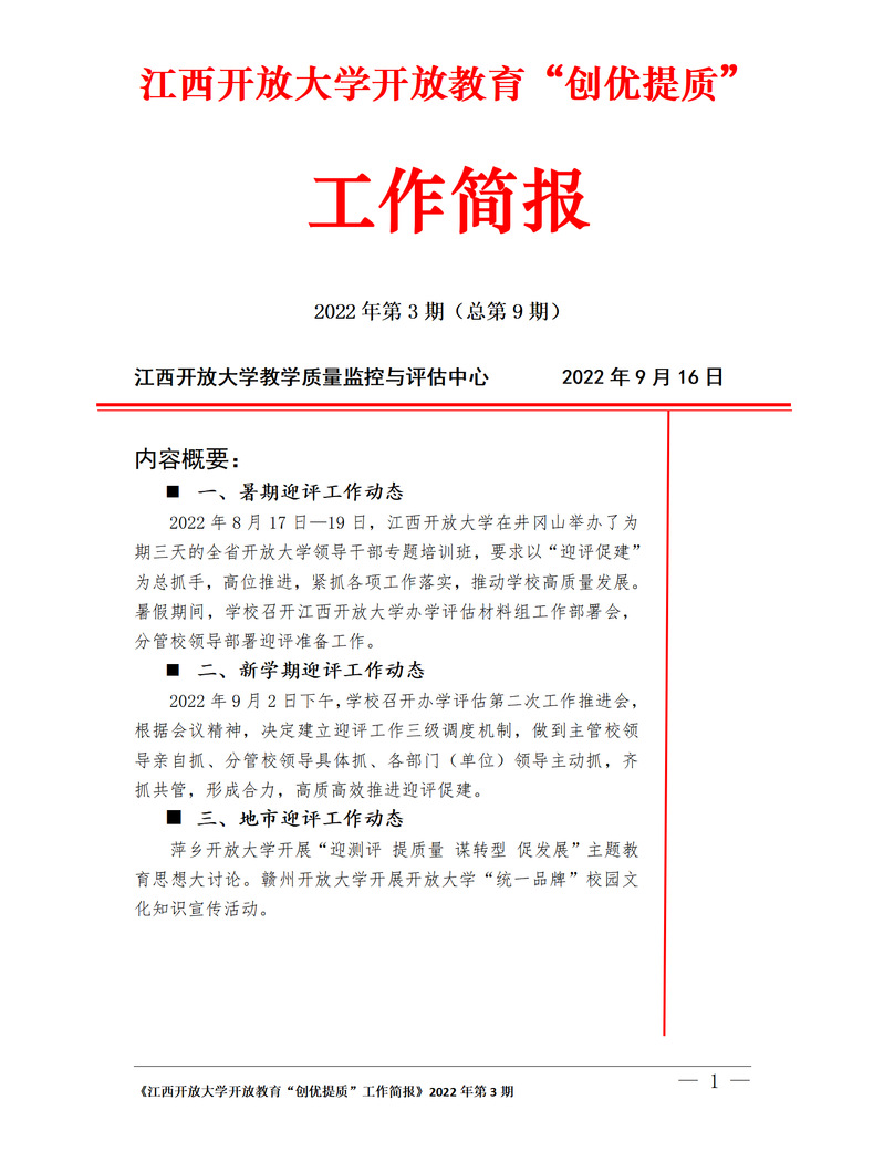 beat365在线唯一官网开放教育“创优提质”工作简报2022年第3期(总第9期)