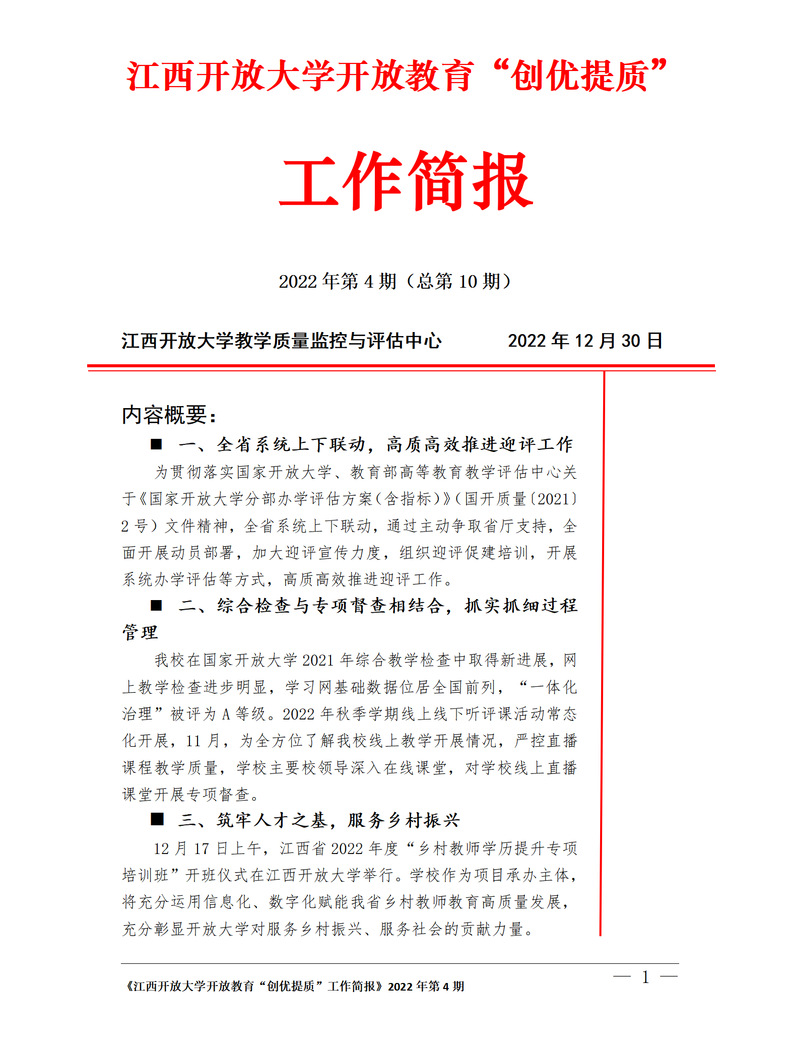 beat365在线唯一官网开放教育“创优提质”工作简报2022年第4期(总第10期)