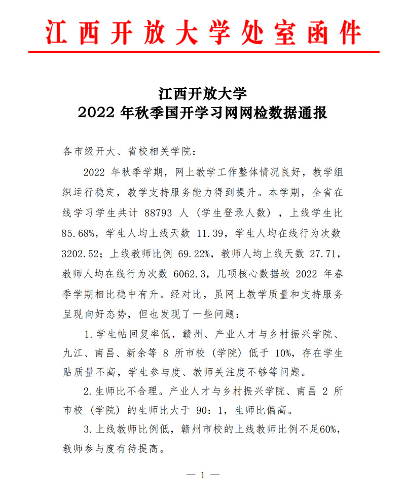 【网检数据】beat365在线唯一官网2022年秋季学期国开学习网网检数据通报
