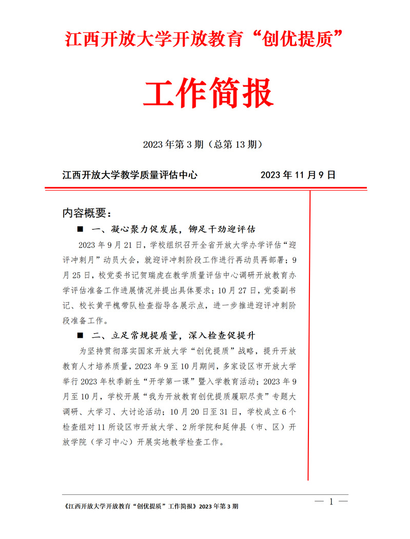 beat365在线唯一官网开放教育“创优提质”工作简报2023年第3期(总第13期)