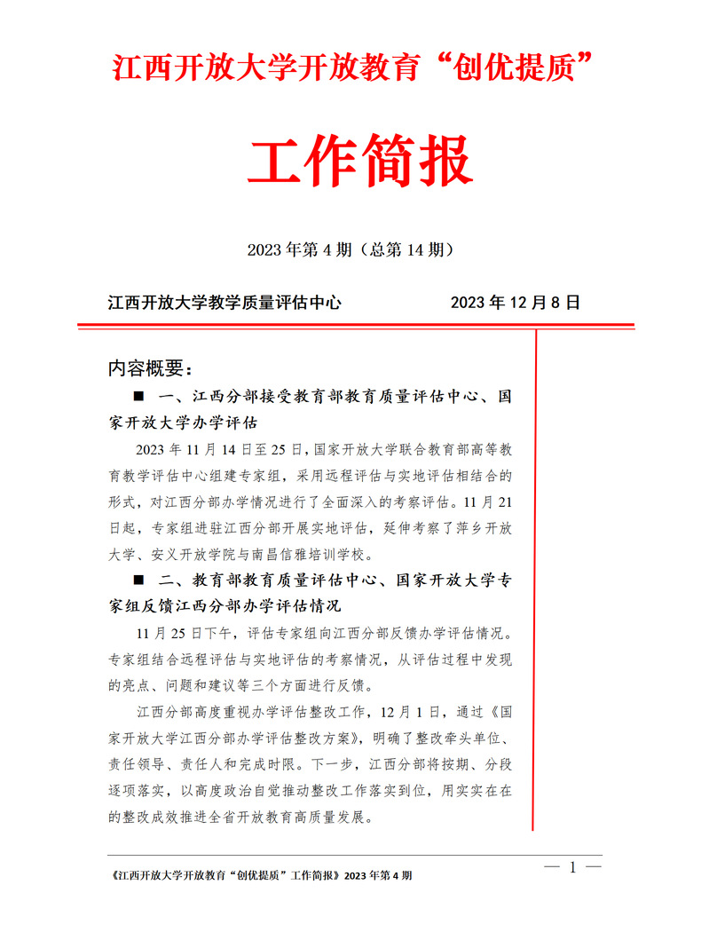 beat365在线唯一官网开放教育“创优提质”工作简报2023年第4期(总第14期)